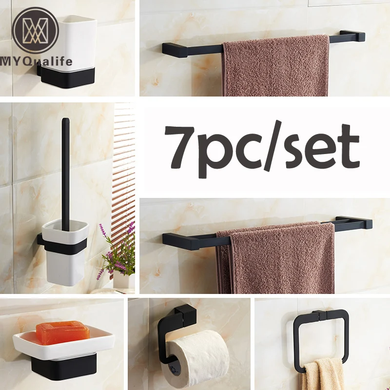 Bathroom accessories set black aluminium bathroom rack towel ring soap dish hook.